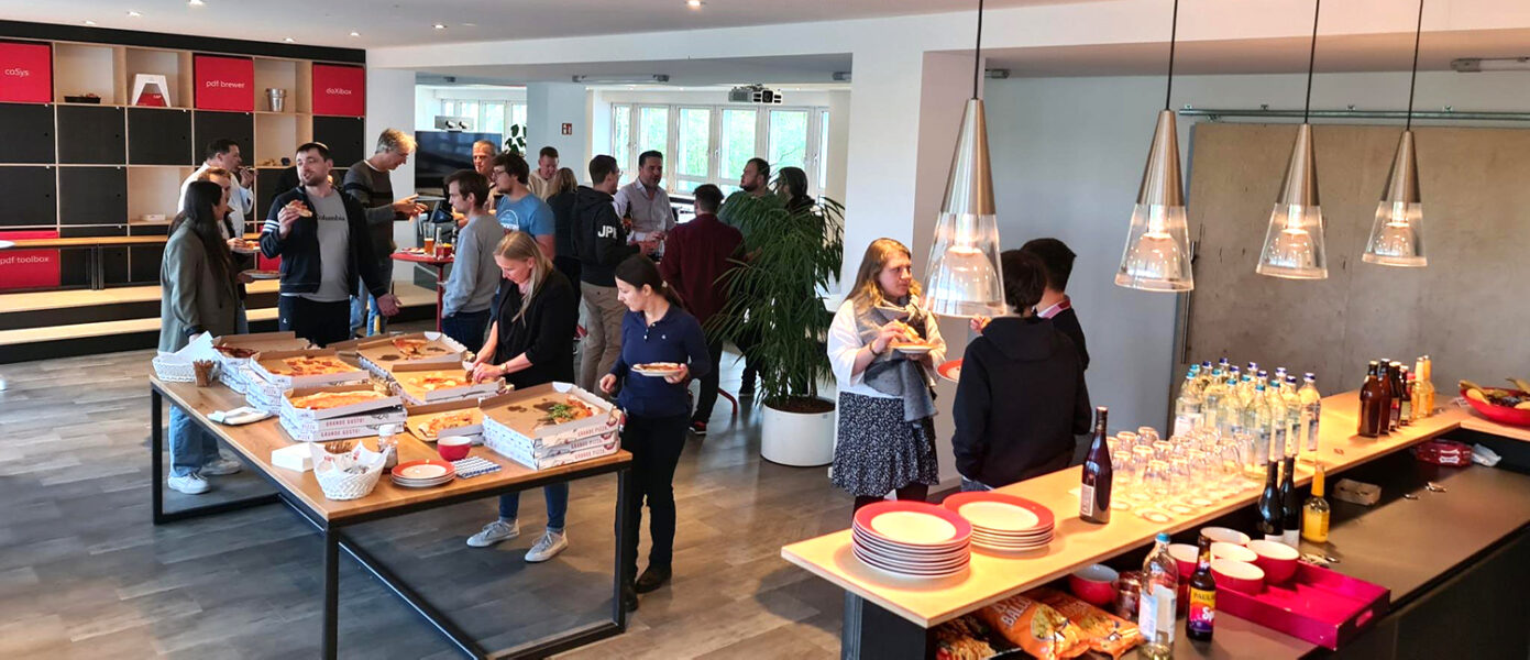 Letzten Donnerstag trafen sich 30 Kolleginnen und Kollegen aus dem Büro und dem Home Office in München zu einer leckeren Pizza.