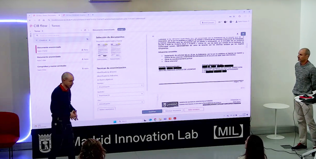 Last week, we presented our solutions for automated document anonymization using artificial intelligence at the Madrid Innovation Lab (MIL), the city of Madrid's reference center for artificial intelligence and other deep-tech technologies, in Madrid.