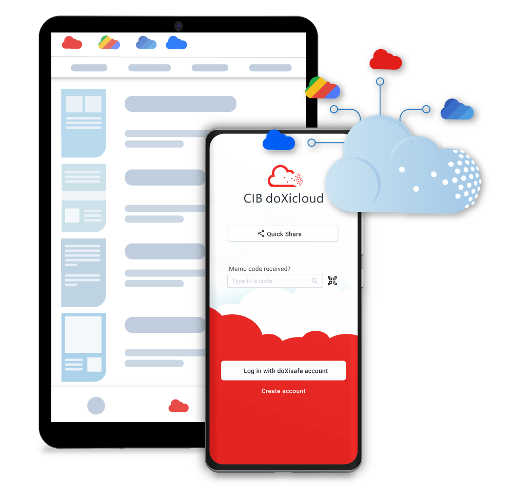 Install CIB doXicloud and securely access your documents from Google DriveMS OneDriveDropbox and CIB doXisafe to have them all centralized in one app.