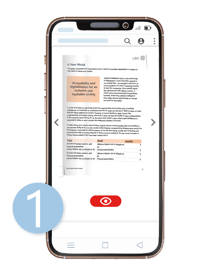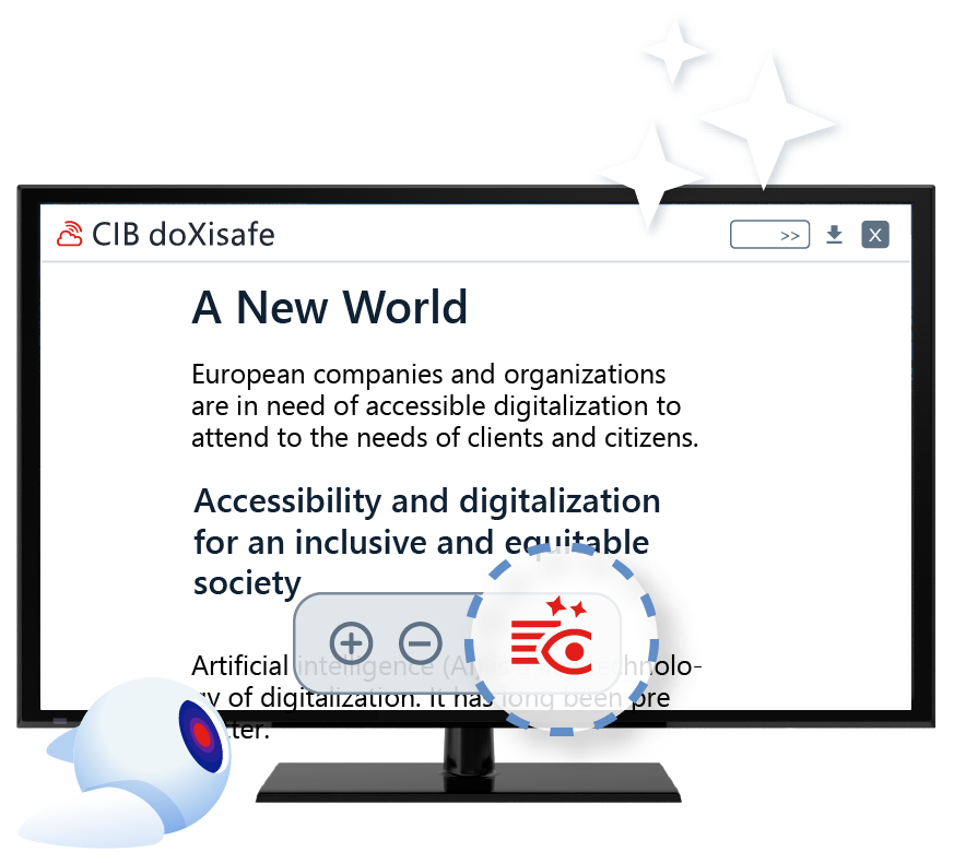 You can now easily test CIB easyRead in your browser: Upload your scan or PDF to CIB doXisafe - after a few seconds the easyRead icon with the eye will appear. Just click on it!