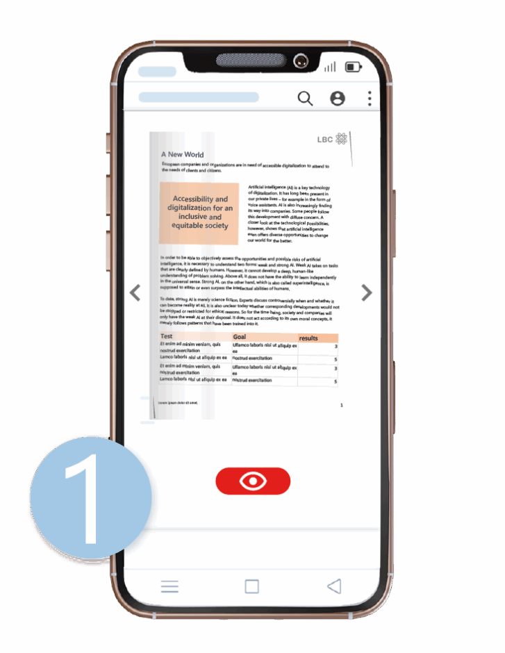 You can now easily test CIB easyRead in your browser: Upload your scan or PDF to CIB doXisafe - after a few seconds the easyRead icon with the eye will appear. Just click on it!