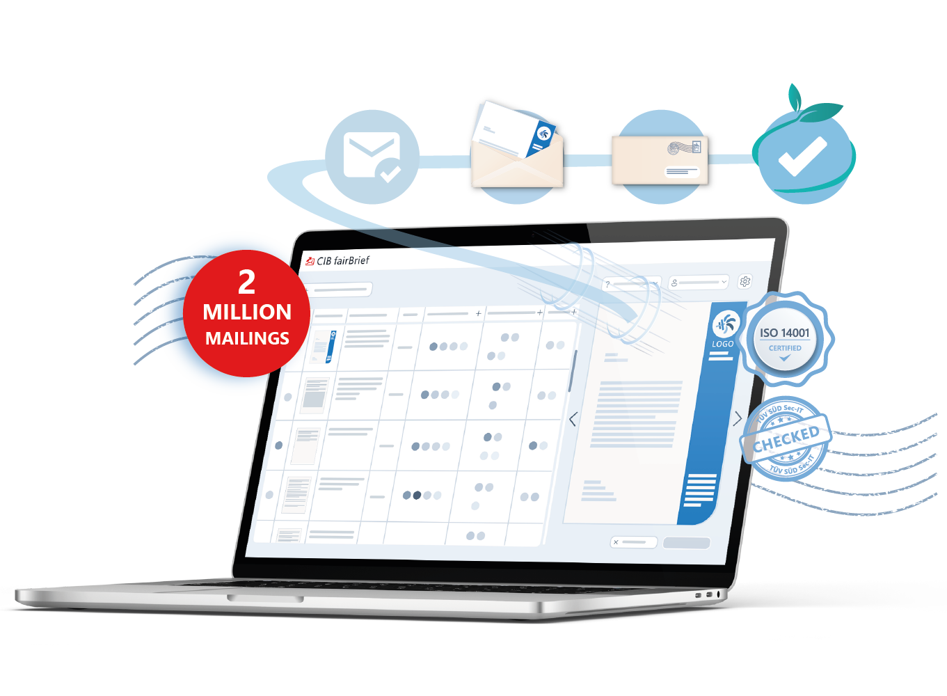 No more printing and enveloping letters: With CIB fairBrief, you can securely send individual letters, serial letters, or even hybrid mail. Save time and money and protect the environment!