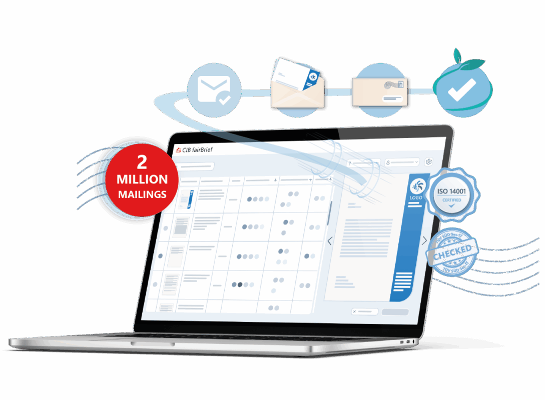 No more printing and enveloping letters: With CIB fairBrief, you can securely send individual letters, serial letters, or even hybrid mail. Save time and money and protect the environment!