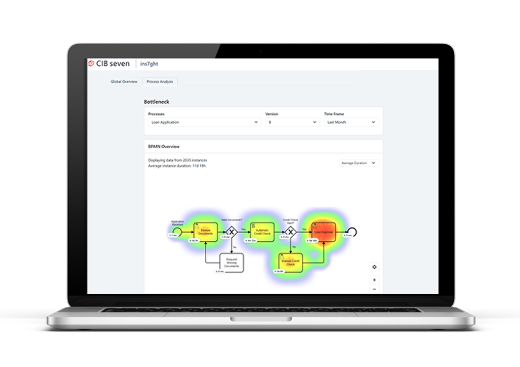 • BPMN heat map overlay visualization for process analysis