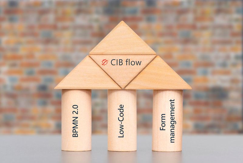 CIB flow uses BPMN 2.0 and low-code technology by means of predefined modules as well as a form construction kit for creating dynamic user forms.
