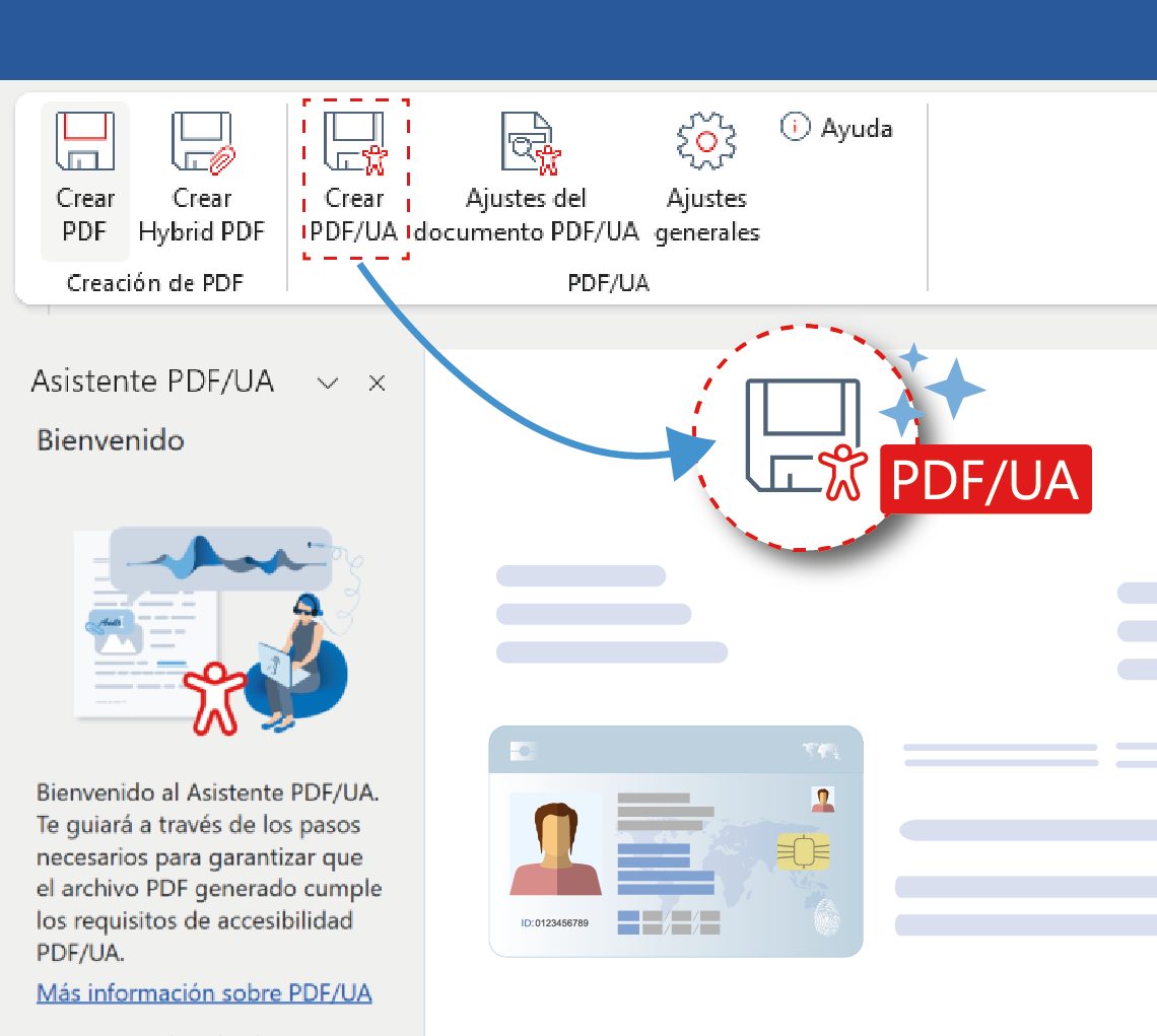 El asistente PDF/UA le guiará hacia la accesibilidad con sólo unos clics.